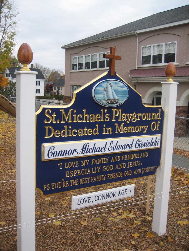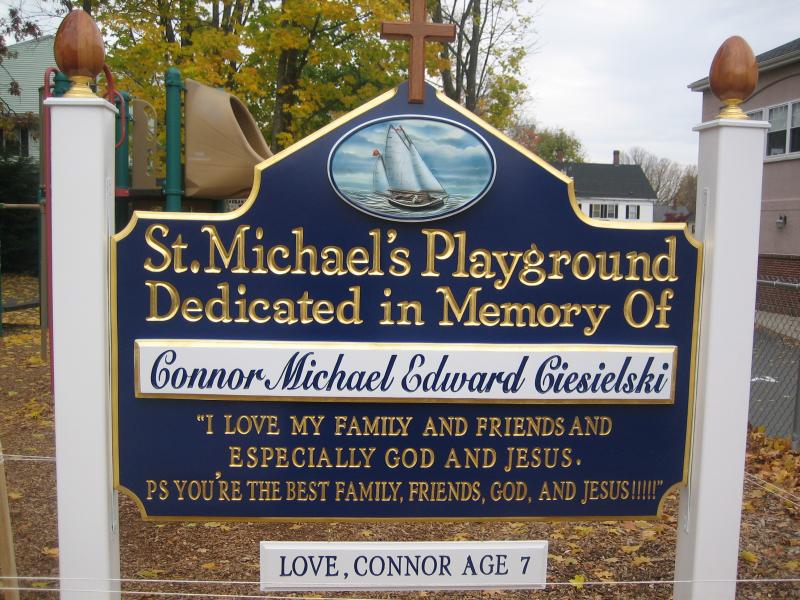 We are deeply honored that St. Michael School has offered to dedicate the school playground in Connor's memory. He loved attending St. Michael School and he especially enjoyed his time playing with his brother and all of his friends on the playground. As parents we are confident that Connor would be extremely proud and humbled to know that his school has chosen to remember him in this way.